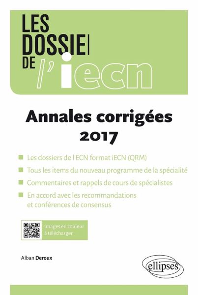 Tous les dossiers pour réviser la spécialité et réussir l'iECN ! - Dossiers au format officiel avec QRM (15 questions par cas et 5 propositions par question) - Cas rédigés et validés par des spécialistes de la discipline (internes, chefs de cliniques et universitaires) - Toute l'icono indispensable dans l'ouvrage et à télécharger en couleur par flashcode - Commentaires et rappels de cours détaillés dans les réponses - Mention des dernières recommandations et conférences de consensus - Rappel des annales précédentes de l'ECN pour les sujets concernés - Barème iECN avec réponses inadmissibles et indispensables