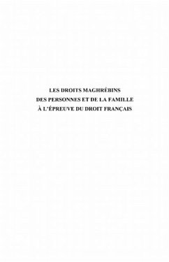 Cet ouvrage poursuit une double comparaison : la premiere concerne les droits maghrebins. Au-dela d'un certain pluralisme, ils conservent un noyau dur commun : un droit penal particulier de la famille et un ordre public familial impregnes de droit musulman classique ; leurs evolutions sont convergentes. La deuxieme comparaison confronte le droit francais aux droits precites, qui leur oppose des reponses de plus en plus paradoxales voire incoherentes. Le couple mixte franco-maghrebin cristallise toutes ces tensions.