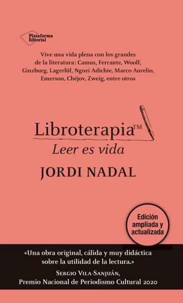 ¿Qué pueden hacer por nosotros los libros? ¿Es la lectura útil? ¿Es terapéutica? ¿Puede hacernos felices? ¿O proveernos de los recursos espirituales necesarios para blindarnos frente a la adversidad? ¿Puede prescribirse la literatura? ¿Beneficia tanto al cuerpo como al alma? La ciencia confirma cada día más los beneficios de los libros. Los estudios demuestran que los efectos de la lectura pueden equipararse a los de la meditación y la medicina. Los lectores duermen mejor, mantienen niveles más bajos de estrés y depresión y más altos de autoestima que los no lectores. Leer prolonga la vida y nos cambia de una forma esencial; la buena ficción expande nuestros horizontes, nos ayuda a entender mejor a los demás, nos vuelve empáticos. Cada capítulo de Libroterapia(TM) es una fórmula para acercarnos a los autores, los contextos, los fragmentos y las reflexiones. Vive una vida plena con los grandes de la literatura: Camus, Canetti, Emerson, Saint-Exupéry, Yourcenar, Chéjov, Zweig, entre otros. "LibroterapiaTM es el libro que más me ha enriquecido de todos los que he leído últimamente. Me ha recordado autores y libros que había leído, y me ha descubierto otros que me apresuro a leer. Gracias, Jordi, por haberlo escrito." Lluís Bassat, publicista y autor de Inteligencia comercial "En gran medida somos los libros que leemos. Ciertamente estos ayudan a entender quién es Jordi Nadal, editor singular, ciudadano comprometido, director humanista, persona cabal, amigo leal. Lea los libros que recomienda en esta joya, LibroterapiaTM, y no será el mismo." Santiago Álvarez de Mon, profesor del IESE y autor de Mi agenda y yo "Para aquellos que amamos leer, pero sobre todo leer bien y saborear la lectura y a veces nos abruma no acertar en nuestra elección, os lo recomiendo. Es la esencia de una vida consagrada a los libros, con cerca de 1.800 títulos leídos, de los que selecciona un puñado de autores que nos ayudarán a estimular nuestros mejores instintos. Espero que lo disfrutéis tanto como yo y que se convierta en la puerta de entrada a títulos que, después de lo visto, no valoraba en su justa medida." Daniel Carreño, presidente de General Electric en España y Portugal "Jordi es el mayor sabio que he conocido y sin duda un ser humano gigante, con una sensibilidad muy especial para hacer felices a los demás. En este libro demuestra su inmensa generosidad al compartir lo mejor de los más de mil libros que ha leído. Obligatorio para todos los que quieran luchar por ser mejores personas y mejores profesionales. Si fuera americano, este libro sería un best seller mundial." Victor Küppers, formador, socio de küppers&co y autor de Vivir la vida con sentido y Vender como cracks.