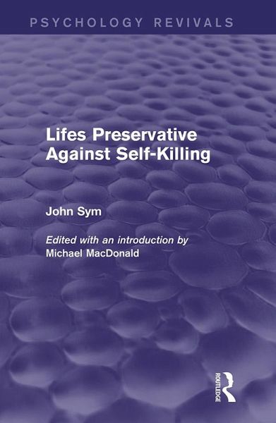 Tavistock Classics in the History of Psychiatry series, the introduction by Michael MacDonald places the book in the context of attitudes to suicide in its day, as well as showing some of the ways that this theological book is also a study of the psychology and sociology of suicide. He discusses the evolution of the law of suicide and analyses the religious beliefs held about it at the time, before going on to look at John Sym himself and the structure of his book.