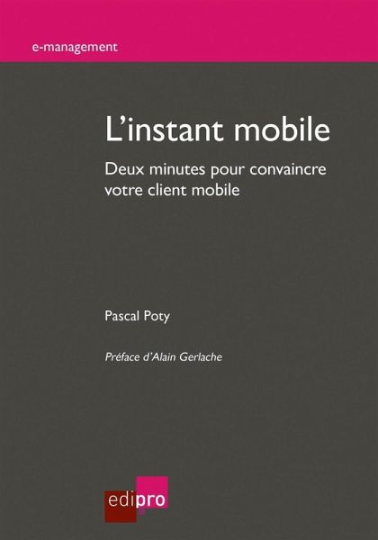 Obtenez les clés du succès pour vos instants mobiles ! Nous regardons en moyenne notre écran de smartphone 150 fois par jour. Toutefois, ces interactions dépassent rarement deux minutes. Pour être présente sur l'écran de votre client mobile, votre entreprise doit donc convaincre endéans ces deux minutes. C'est l'instant mobile, un instant éphémère, récurrent, localisé et éminemment personnel. Sa compréhension passe donc par une agilité inédite pour les entreprises. En effet, le mobile ne constitue pas un canal supplémentaire de leur offre de produits et services, mais bien un levier stratégique pour réussir leur transformation digitale et organisationnelle. Le smartphone est au carrefour de ces interactions multiples et complexes où la capture de l'attention du consommateur devient un enjeu majeur pour les marques et les enseignes, y compris dans l'environnement physique du point de vente. Maîtriser les codes de l'instant mobile, c'est entrer en conversation avec votre client, mobiliser votre communauté et plus globalement renforcer l'attachement et la fidélité à votre marque. A l'image de nos vies quotidiennes, cet ouvrage est donc avant tout un concentré d'instants mobiles. Ceux-ci y sont décryptés au travers d'exemples concrets à destination des entreprises souhaitant disposer des clés nécessaires pour intégrer les exigences d'une réalité nouvelle, où le smartphone est devenu ce premier écran par lequel leurs clients vont les découvrir. Cet excellent manuel nous montre comment tirer avantage d'une époque où le téléphone et la technologie en général dominent. A PROPOS DE L'ÉDITEUR Depuis plus de 15 ans, Edi.pro, maison d'édition belge, publie des livres et des lettres d'informations à destination des professionnels (dirigeants de PME, cadres, gestionnaires, professions libérales, enseignants, étudiants,...). Distribué dans toute la francophonie, Edi.pro édite des ouvrages, papier et électronique, tant en français qu'en néerlandais. Le catalogue compte près de 250 titres rédigés par des spécialistes de terrain. A PROPOS DE L'AUTEUR Pascal Poty est juriste spécialisé dans le droit de la concurrence et le droit des télécommunications pour le compte de plusieurs opérateurs de télécommunications mobiles en Europe. Il donne aussi des cours en droit des communications électroniques dans le Master Télécommunications de l'Université des Sciences et Technologies de Lille 1 et de l'Ecole Nationale des Ingénieurs en Communications (ENIC) ainsi que des cours en droit des TIC dans le Master Diffusion des connaissances scientifiques et technologiques, option Veille stratégique et Intelligence Industrielle (VS2I) de l'Université des Sciences et Technologies de Lille 1. Il tient également un blog (Mobisphere.be) où il parle de l'expérience mobile sous toutes ses formes : technologique, économique, juridique et sociale.