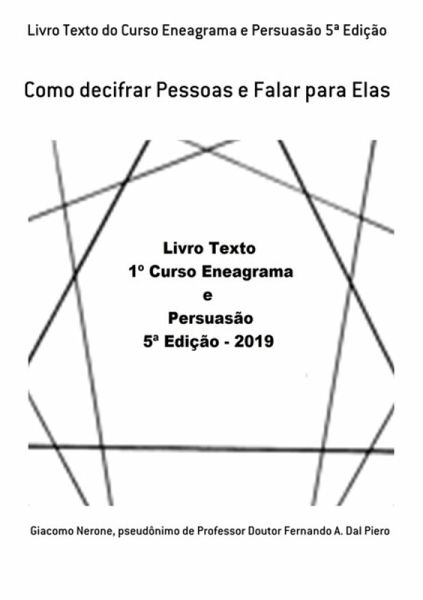 Este é um livro texto do curso sobre eneagrama e persuasão. Eneagrama refere-se a um símbolo de nove pontas que, como modelo gráfico, distingue, ordena e correlaciona nove qualidades que são assumidas como fundamentalmente aceitas. Nosso objetivo é mostrar e popularizar a existência de uma ferramenta para interromper as reações automáticas da personalidade por meio da conscientização. Quanto mais se percebe as reações mecânicas de nossa personalidade, menor a identificação com elas e maior a liberdade. Os autores deste livro de bolso se colocam a disposição para aclarar dúvidas ao tempo em que oferecem uma abordagem inovadora e integral para colocar este modelo em termos sistêmicos.