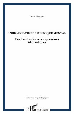 Le "e;lexique mental"e; est l'ensemble des representations que nous avons des mots de notre langue. A ce titre, il constitue un objet d'etude essentiel de la psychologie cognitive contemporaine. Apres une synthese des cadres theoriques utilises et des connaissances acquises dans le domaine de l'organisation lexicale et de l'acces au lexique, l'auteur propose une approche originale du lexique mental a travers l'etude de trois questions : la representation des contraires, la resolution de l'ambiguite lexicale et la comprehension des expressions idiomatiques, qui fait actuellement l'objet de nombreux travaux.