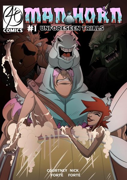 Man-Horn is perhaps the deadliest mercenary in all of Lore, and he has a unicorn's head on his head. Yes, he put it there himself. No, he doesn't want to talk about it. The mission is simple: escort an esteemed member of the court across town. To mercenary Man-Horn and his bubbly fairy companion Pixie, it's just easy money. Little do they know, this mission will start them on an adventure that will span worlds, spin heads, and threaten the world as they know it. Issue 1 marks the beginning of that journey. Man-Horn is a work of passion created by up-and-comers Nick and Courtney Forte. Featuring a vividly drawn high fantasy world of fairies, satyrs, centaurs, giants, gnomes, elves, and everything in between, not to mention tongue-in-cheek humor, violence, gore, and touching stories of loves lost, Man-Horn has something for everyone.
