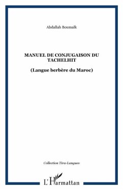 La partie centrale de ce manuel est constituee de tableaux de conjugaison. Outre le chapitre introducteur qui decrit le systeme d'ecriture et le verbe en tachelhit, le manuel est compose de trois index alphabetiques avec des renvois systematiques aux tableaux. Le premier fournit les themes de l'aoriste intensif des verbes. Les deux autres se presentent sous la forme de glossaires tachelhit-francais et francais-tachelhit.