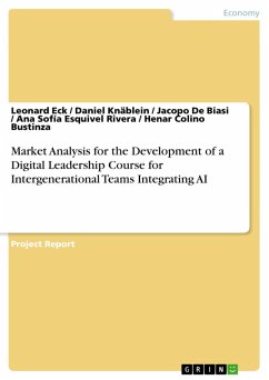 Project Report from the year 2025 in the subject Leadership and Human Resources - Management Styles, grade: 1,3, University of Applied Sciences at Schweinfurt (Wirtschaftsingenieurwesen), language: English, abstract: The ultimate objective of this project is to conduct a market research analysis, identifying what is currently available in the market and what is needed in terms of leadership within intergenerational working environments. Additionally, the project aims to clarify how AI can be used most effectively as a tool for leadership across different generations. With this information, the team will be able to provide actionable recommendations, ultimately creating the foundational basis for a high-end intergenerational leadership course. This research explores the development of a leadership course designed to address the complexities of managing intergenerational teams while integrating artificial intelligence (AI) as a supportive tool. Overall, the structure of the report is based on the way the research question is formulated. The seminar paper begins with a literature review that outlines foundational theories of leadership, examines generational differences, and highlights AI's potential role in enhancing leadership practices. Following this, a market analysis identifies current trends and offerings in leadership training programs. The methodology chapter details the mixed-methods approach, combining surveys and expert inter-views to gather both quantitative and qualitative insights. The data collection and analysis sections present key findings on leadership qualities, communication styles, and preferences across generations, offering data-driven insights into course design. Finally, the discussion and conclusion provide actionable recommendations to create a competitive and adaptable training program.