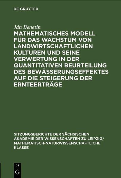 Keine ausführliche Beschreibung für "Mathematisches Modell für das Wachstum von landwirtschaftlichen Kulturen und seine Verwertung in der quantitativen Beurteilung des Bewässerungseffektes auf die Steigerung der Ernteerträge" verfügbar.