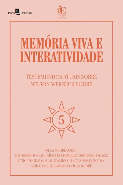 A obra Memória viva e interatividade: testemunhos atuais sobre Nelson Werneck Sodré (Volume 5), organizada por Olga Sodré, aborda questões sociais e educacionais brasileiras. Este volume é estruturado em cinco capítulos, reúne artigos de pesquisadores e admiradores de Nelson Werneck Sodré, que buscaram contemplar assuntos da atualidade e de grande relevância para a sociedade, de forma clara e objetiva, com a memória de Nelson Sodré e a suas contribuições. Contribuindo assim, para fomentar a busca pelo saber e pensamento social.
