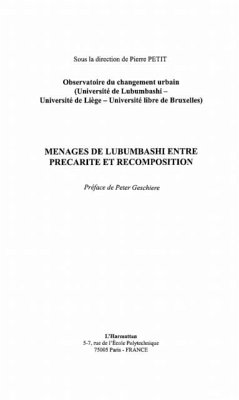 Cet ouvrage analyse les resultats d'une enquete socio-economique aupres de 84 menages de l'agglomeration, un quart de siecle apres la derniere etude de ce genre. Au rythme des biographies familiales, on y redecouvrira l'histoire de la ville, la composition de la maisonnee, l'espace domestique, les budgets menagers et l'inventaire des activites de debrouille. Un melange d'approches quantitatives et qualitative pour etudier la crise telle que vecue par les foyers congolais.