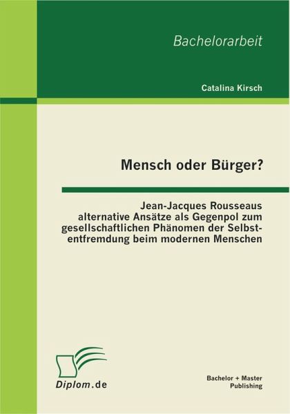 Rousseaus Zivilisationskritik bezog sich vor allem auf die durch den Fortschritt entstandenen neuen Begierden und Interessenkonflikte, die den Menschen, seines Erachtens nach, in ein Herrschafts- und Knechtschaftsverhältnis drängen würden, ihn somit in Widerspruch mit seinen natürlichen Anlagen bringen und schließlich von sich selbst entfremden würden (vgl. Meermann, 2005). Er ging davon aus, dass die Diskrepanz zwischen der gesellschaftlichen Existenzform des Subjektes und seiner eigentlichen Natur, also seinen ursprünglichen Grundstrebungen, den Ausgangspunkt für die Entstehung der Ungleichheit und des Bösen bilde und somit Schuld am sittlichen Verfall des modernen Menschen habe (vgl. Broecken, 1974). Jean-Jacques Rousseau hat sich Zeit seines Lebens mit den Grundlagen der Laster und des Elends der Menschen und somit auch mit dem Konflikt zwischen Individuum und Gesellschaft, Begierde und Tugend sowie Freiheit und Autorität auseinandergesetzt (vgl. Soëtard, 1989). Er versuchte, den Widerspruch des Individuums, der zwischen seinem natürlichen und seinem gesellschaftlichen Sein existiert, zu überwinden, indem er zwei unterschiedliche Modelle der Lebensführung entwarf: Mensch (homme) und Bürger (citoyen). Auf der Grundlage seiner Werke - ,Diskurs über die Ungleichheit' (1755), ,Der Gesellschaftsvertrag oder die Grundsätze des Staatsrechtes' (1762) und ,Emil oder über die Erziehung' (1762) - wird diese Arbeit zunächst untersuchen, wo genau nach Rousseau die Gründe für den fatalen Widerspruch und somit auch die Bedingungen für die Entfremdung des Menschen anzusiedeln sind. In diesem Zusammenhang wird versucht, die Entwicklung von Rousseaus Naturzustand hin zum Gesellschaftszustand nachzuzeichnen und die Differenzen zwischen den einzelnen Stadien aufzuzeigen. Des Weiteren wird der Versuch unternommen, herauszustellen, was Jean-Jacques Rousseau unter den Kategorien Mensch und Bürger versteht und ob diese als alternative Existenzen zu dem gegenwärtigen, entfremdeten und modernen Menschen überhaupt denkbar sind. Dabei wird der Fokus der Analyse über den Bürger jedoch nicht primär auf die politische Dimension, sondern auf die entsprechende Erziehungsart gerichtet. Das Kapitel über den Menschen soll vorwiegend die Inhalte der natürlichen Erziehung fokussieren und sich an den Gesetzen der Notwendigkeit, Nützlichkeit und Sittlichkeit orientieren.