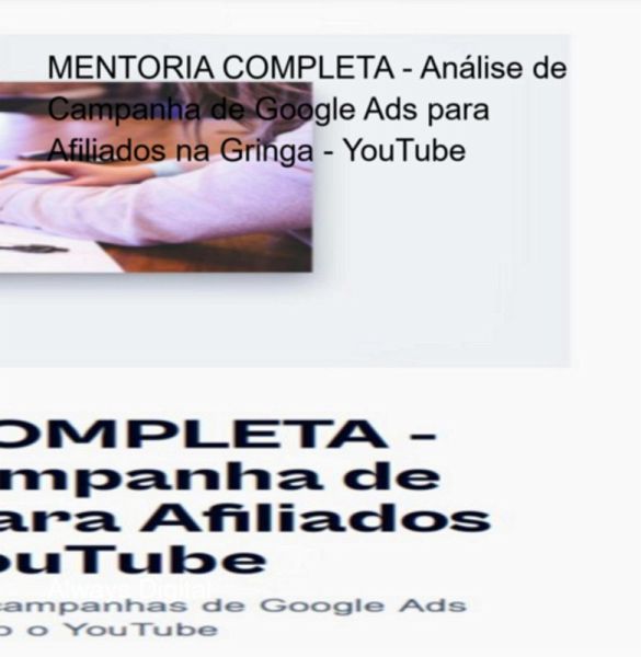 Aprenda a analisar e otimizar campanhas de Google Ads para afiliados na Gringa usando o YouTube Este curso de mentoria completa ensina você a usar o Google Ads para promover produtos como afiliado na Gringa através do YouTube. Você aprenderá desde os conceitos básicos do Google Ads até estratégias avançadas de campanha, análise de performance e otimização de campanhas no YouTube.