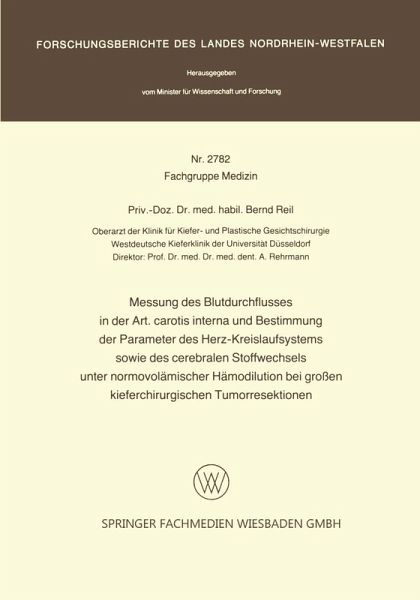 Messung des Blutdurchflusses in der Art. carotis interna und Bestimmung der Parameter des Herz-Kreislaufsystems sowie des cerebralen Stoffwechsels unter normovolämischer Hämodilution bei großen kieferchirurgischen Tumorresektionen (eBook, PDF)