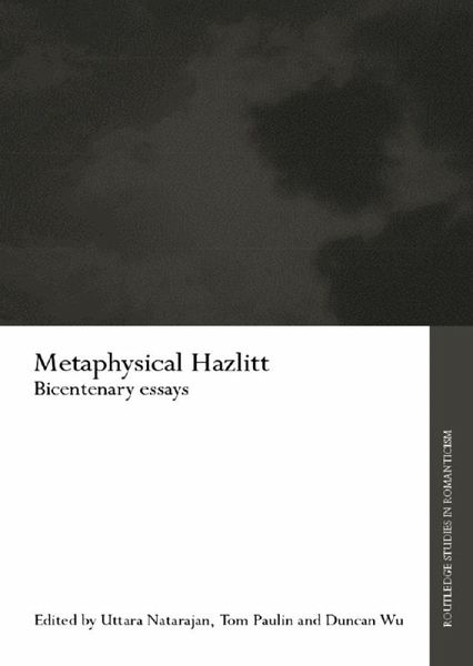 Uttara Natarajan is Lecturer in English at the Department of English and Comparative Literature, Goldsmiths' College, University of London, and the author of Hazlitt and the Reach of Sense: Criticism, Morals, and the Metaphysics of Power (1998). >Tom Paulin is G.M. Young Lecturer in English at Hertford College, Oxford and the author of The Day-Star of Liberty: William Hazlitt's Radical Style (1998). >Duncan Wu is Professor of English Language and Literature at St. Catherine's College, Oxford and the editor of Selected Writings of William Hazlitt (9 vols, 1998).