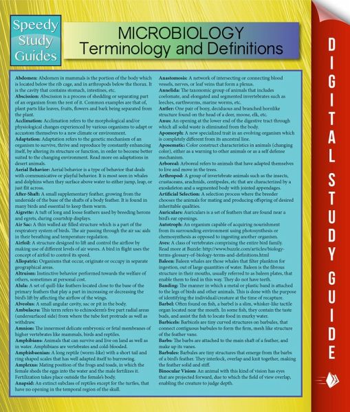 If you are a student studying Microbiology, you may be greatly helped by a Microbiology Terminology and Definitions Study Guide as it can help you to focus and remember key terms that are going to be important to know when a big test arrives. These study guides also organize the information in a format that makes it easier for you to understand and conceptualize the concepts that you are learning about in school. Consider looking into purchasing such a study guide for your Microbiology course.