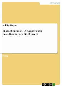 Essay aus dem Jahr 2008 im Fachbereich VWL - Mikroökonomie, allgemein, Ekonomická univerzita v Bratislave, Sprache: Deutsch, Abstract: Kurzfassung Der Wettbewerbskapitalismus, als idealtypisches Wirtschaftssystem gehört seit Beginn des 20. Jahrhundert unwiederbringlich der Vergangenheit an. Der Wettbewerb der großen Volkswirtschaften wird von relativ wenigen, marktmächtigen Großunternehmen geprägt. In diesem Stadium der Konzentration und Zentralisation der Unternehmensmacht folgt die Bestimmung von Preisen und Mengen nicht mehr den Gesetzmäßigkeiten, die in einer Situation vollkommener Konkurrenz herrscht. Um daher ein realistisches Bild des Wettbewerbs zu erhalten, widmet sich die vorliegende Studienarbeit, dem Modell der unvollständigen Konkurrenz. Abstract The competition-capitalism as a characteristic ideal economic system belongs since the beginning of the 20th century to the past. Ever since the competition of the biggest economies is affected by relatively few and market powerfully companies. In this new position state of concentration and centralisation the determination of prices and quantity doesn't match the regularities of the perfect competition. Therefore target of this paper is, to create a realistic picture of the imperfect competition.