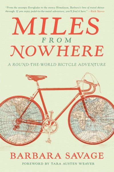 Miles from Nowhere is the story of Barbara and Larry Savage's sometimes dangerous, often zany, but ultimately rewarding 23,000-mile bicycle odyssey, which took them through 25 countries in two years. Along the way, these near-neophyte cyclists on their ten-speeds encountered warm-hearted strangers eager to share food and shelter, bicycle-hating drivers who ran them off the road, various wild animals (including an attack camel), rock-throwing Egyptians, overprotective Thai policeman, motherly New Zealanders, meteorological disasters, bodily indignities, and great personal joys. The stress of traveling together constantly tested yet strengthened the young couple's relationship and as their trip ends, you'll find yourself yearning for Barbara and Larry to jump back on their bikes and keep pedaling.