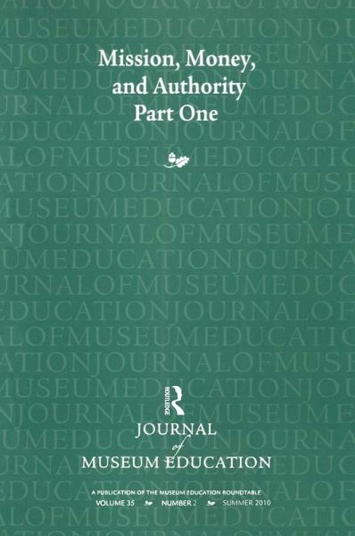 Sponsored by the Museum Education Roundtable, this is volume 35, Number 2 of the Journal of Museum Education (JME) Part One of Mission, Money, and Authority, published in the summer of 2010. This edition includes articles on museums and other non-profits in the current recession; project fundraising; managing museum priorities in a difficulty economy; obtaining support and reducing obstacles; the value of online learning and making programs self-sustaining.