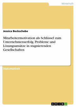 Diplomarbeit aus dem Jahr 2006 im Fachbereich Führung und Personal - Mitarbeitermotivation, Mitarbeiterzufriedenheit, Note: 1,0, Hochschule Bremen, Sprache: Deutsch, Abstract: Die vorliegende Arbeit erörtert im ersten Schwerpunkt Möglichkeiten und Maßnahmen zur Motivation der Mitarbeiterinnen und Mitarbeiter und damit zur Optimierung ihrer Leistungsbereitschaft. Ausgehend von begrifflichen Klärungen werden zunächst grundlegende theoretische Ansätze zur Motivationsforschung erläutert. Die Einstellung der Mitarbeiter zur Arbeit, deren zentrale und peripheren Motive werden dargelegt und diskutiert, um dann der Frage nachzuspüren, ob und in welchem Umfang typische Beispiele des Berufsalltag das Arbeits- und Leistungsverhalten von Mitarbeitern beeinflussen. Die Beispiele sind so gewählt, dass sie nach meiner Auffassung in ihrer Bedeutung auch Gewicht und Reihenfolge widerspiegeln. Den zweiten Schwerpunkt bildet die Untersuchung der vielschichtigen Gründe für die momentan zu beobachtenden Motivationskrise der Beschäftigten am Arbeitsplatz. Diesem Zerfall der Mitarbeitermotivation im Berufsalltag wird umfassend nachgegangen. Die jährlichen Wachstumsraten scheinen über Fortschritt, Wohlstand und Beschäftigung, über Glück und Unglück einer Gesellschaft zu entscheiden. Ausgehend von der Überlegung, dass die vor allem seit der Jahrtausendwende klar und bewusst zu Tage tretende wirtschaftlichgesellschaftliche Stagnation Deutschlands ein zentraler Baustein dieser Motivationskrise sein kann, werden zunächst die hierfür verantwortlichen Gründe aufgezeigt. Die sich anschließende Auseinandersetzung befasst sich mit dem Phänomen "Negativität" als wahrzunehmende Reaktion nicht nur auf die gegenwärtige Konjunktur- und Strukturkrise, sondern auch auf die aktuell gesellschaftspolitischen Umbrüche, wie sie sich zum Beispiel in der Agenda 2010 mit ihrem Reformschwergewicht Hartz IV zeigen. Im Fokus stehen dann deren Auswirkungen auf die Arbeitswelt insbesondere auf die Motivation und die Leistungsbereitschaft der Mitarbeiter. Den Abschluss bilden Ansätze und Lösungsmöglichkeiten für Politik und Wirtschaft, wie - Hand in Hand - die diskutierten Probleme unserer Gesellschaft anzugehen sein könnten, um die Bevölkerung und mithin auch die Beschäftigten aus ihrer kollektiven Starre und dem lähmenden Pessimismus zu lösen.
