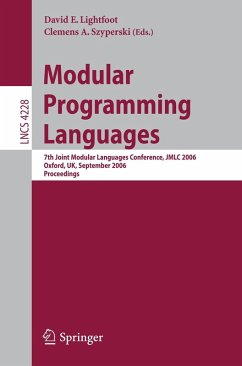 On behalf of the Steering Committee we are pleased to present the proceedings of the 2006 Joint Modular Languages Conference (JMLC), organized by Oxford Brookes University, Oxford, UK and held at Jesus College, Oxford. The mission of JMLC is to explore the concepts of well-structured programming languages and software and those of teaching good design and programming style. JMLC 2006 was the seventh in a series of successful conferences with themes including the construction of large and distributed software systems, and software en- neering aspects in new and dynamic application areas. We were fortunate to have a dedicated Program Committee comprising 41 internationally recognized researchers and industrial practitioners. We received 36 submissions and each paper was reviewed by at least three Program C- mittee members (four for papers with an author on the Program Committee). The entire reviewing process was supported by the OpenConf system. In total, 23 submissions were accepted along with two invited papers and are included in this proceedings volume. For the successful local organization of JMLC we thank Muneera Masterson, Ali McNi?e and Fiona Parker and other sta? and student helpers of Oxford BrookesUniversityaswellasRosemaryFrameandJoKnightonandothersta?of JesusCollege,Oxford.TheproceedingsyounowholdwerepublishedbySpringer and we are grateful for their support. Finally, we must thank the many authors who contributed the high-quality papers contained within these proceedings.