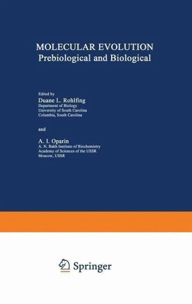 Formuch of his professional career, Sidney W. Fox has devoted his thought and research to studies of molecular evolution. MOLECULAR EVOLUTION: PREBIOLOGICAL AND BIOLOGICAL is a dedicatory vol ume of thirty-five contributed papers commemorating, on the occasion of his sixtieth birthday, his many achievements. The volume had its conception in the USSR (by AIO), had much of its development in the USA (by DLR) , and was made possible by the enthusi astic responses and enc·ouragements of fifty-eight contributors from ten nations and many disciplines. These numbers connote not only the es teem in which S. W. Fox is regarded, but also the international and in terdisciplinary nature of studies of molecular evolution. The term "molecular evolution" is often associated with abiotic or prebiotic evolution; it is also used to denote processes of biotic evolu tion at the molecular level. The point of merger of these two sub-areas, at "life," represents but one stage (albeit a very important one) in the total process of the evolution of matter, from hydrogen to Homo sapiens and beyond. This volume considers aspects of molecular evolution in this broader sense. Accordingly, the contributors include persons ex perienced in the prebiological and also the biological aspects of molecu lar evolution; several "outside" viewpoints are provided by persons whose principal interests lie in other diSCiplines. The contributions are both experimental and theoretical.