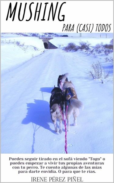Nos cruzamos en el camino con un enorme rebaño de ovejas así que detengo el tiro. Le indico al perro guía que se pare y espere. Y eso hace. Yo, mientras tanto, en un alarde de exceso de confianza, me apoyo sobre el manillar y miro aburrida cómo las ovejas se van retirando lentamente del camino. En lugar de mirar a mis perros. (Primer error). Cuando el camino por fin está libre, sigo recostada sobre el manillar, con cara de hastío. Y sin mover ni un músculo, le digo al guía "hike" Es la orden de ponerse en marcha. (Segundo error). Pues dicho y hecho. El perro de cabeza pega un tirón capaz de reventar una cadena y sale corriendo. En dirección a las ovejas. Que estaban ya en mitad de un erial lleno de piedras. Los huskies que le siguen secundan la moción y suman toda su fuerza tractora, que es mucha. Y yo, que peso 50 kg, salgo por los aires mientras la bicicleta se me escapa de las manos y empieza a dar tumbos y botes de metro y medio entre las piedras del erial. Mientras busco dónde aterrizar, observo una estampida de ovejas. Salen ovejas en todas direcciones. Y en una de esas direcciones, también sale un señor pastor acojonado, que corre más que todas sus ovejas juntas. Me estampo contra el suelo, y con la fuerza que da la adrenalina, reboto y me pongo a correr yo también. Pero detrás de mis perros. No les alcanzo. Empiezo a gritar y a mentarles todo el pedigrí mientras corro. Les da igual. (...) Unas risas. Aunque reconozco que en ese momento no me estaba riendo nada. Bueno, ahora ya sabes algunas cosas que no hay que hacer cuando se practica mushing. Si quieres saber cómo acabé así, igual te tienes que leer este libro. Si te gustaría aprender cómo enseñar a tu perro, sea de la raza que sea, a tirar de algo con ruedas sin vivir "aventuras" como ésta, lo mismo leer este libro te ayudaría. Si además estás pensando en que quieres que el mushing sea algo divertido y seguro, para ti y para tu perro, pero no sabes ni por dónde empezar, pues puedes empezar por leer este libro. Y si quieres saber cómo terminó la película, entonces sí que no te queda más remedio que leer este libro. Eso sí, si estabas pensando que lo de hacer mushing iba de ir dando elegantes curvas en tu trineo mientras levantas polvo de nieve a tu alrededor y susurras indicaciones a tus disciplinados y perfectamente colocados perros súper fotogénicos, mejor sigue viendo Togo y Bajo cero y no te muevas del sofá. Esto no va a ser para ti.