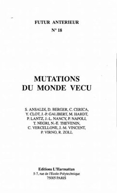 "e;Nous vivons une situation ou les certitudes du monde vecu qui ont une portee existentielle pour les hommes , sont menacees et meme souvent detruites"e; C'est autour de ce constat que Futur Anterieur organise ce numero, il le fait a partir de perspectives theoriques differentes, en ouvrant en particulier une reflexion sur psychanalyse et quotidien, il le fait aussi en analysant plusieurs questions qui font aujourd'hui l'actualite de la vie quotidienne : le monde vecu a l'epreuve de la reunification allemande, les enjeux d'un revenu de citoyennete, l'exploitation et ses realites vecues. Futur Anterieur entend etre un espace ou la reflexion critique poursuive son cours, les trois contributions qui ouvrent ce numero, l'interrogation de P. Lantz sur l'inclination nietzscheenne de Lefebvre, l'enquete de P. Virno entre vie et philosophie et la lecture que fait P. Napoli des lecons de Foucault sur l'historicisme.-, participent de ce projet.