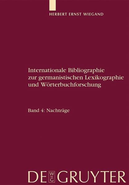Die Titelnachträge im Band 4 der "Internationalen Bibliographie zur germanistischen Lexikographie und Wörterbuchforschung. Mit Berücksichtigung anglistischer, nordistischer, romanistischer, slavistischer und weiterer metalexikographischer Forschungen" betreffen nicht nur den Zeitraum von 2007 bis 2014, sondern auch Arbeiten, die vor 2007 erschienen sind. Ein 5. Band, der das Sachregister enthält, erscheint voraussichtlich 2015.