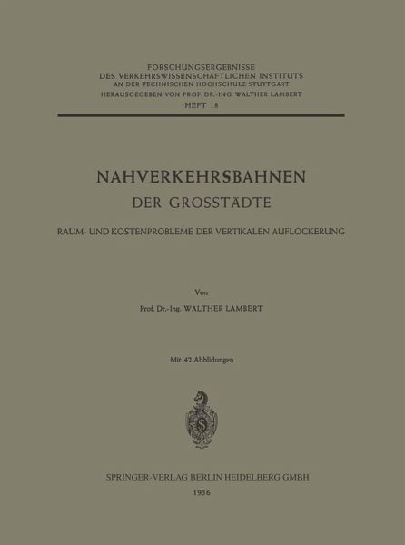 1. Das großstädtische Verkehrsproblem.- 2. Zweck der Untersuchung.- 3. Grundlagen für die Untersuchung.- 4. Kosten der festen Bahnanlagen der freien Strecke sowie der Bahnhöfe und Haltestellen.- 5. Kapitaldienst und Selbstkosten.- 6. Ergebnis und Folgerungen.- 1. Ergebnisse.- 2. Bilder.- 3. Tabellen.