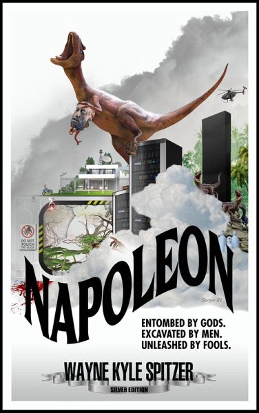 The steel mesh started to break: first one joint, then another. Napoleon stood sideways on the fence like a parrot, his splay toes gripping the bars. He braced himself with his legs and pulled at the grid with his teeth. The muscles of his neck rippled; his growl was a steady trill. Metal squealed as he peeled a section back. Lightning flashed nearby, followed by a crack-kaboom! In the wash of light, the man saw the dinosaur looking at him. Glaring at him. Its color had gone blood red. He dropped the shock prod and swallowed, tasting bile. His head was swimming; he felt nauseated. The game had gone far enough, he realized. He had to end it-he had to end it now. He stepped back over to the control box and flipped it open, sought out the RUN ELECTRIFICATION button. He punched it with the bottom of his fist. The air seemed to vibrate, and sparks exploded beneath Napoleon's hands and feet. The dinosaur was knocked off the fence instantly. It crashed into the mud with a tremendous splash, and writhed violently. Then it struggled to its feet and latched onto the fence again. Sparks popped and spit; there was the smell of burnt flesh. Napoleon backed off, cocking his head. His foreclaws opened and closed. He sniffed at the electrically charged air, and at the ground. His left foot was smoking. He didn't approach the fence again. The man stepped closer and peered through the mesh. "You're learning, aren't you?" he said, and scooped up the shock prod from the mud. He wiped it on his lab coat. "You're learning not to mess with me, aren't you?" Napoleon looked at him, then shifted his neck to the side oddly. He was looking at something behind the man, something low to the ground. The man turned around. There was nothing there but the steel hatch to the feeding shaft, set into concrete like an oversized manhole cover. It was dotted with dried blood and padlocked heavily. He turned back to Napoleon, dismissing the behavior, and found the dinosaur craning to look behind itself. Its head was cocked as though listening to something. The man exhaled; he was tired of playing dino-games. "Well," he began, preparing to prod it a final time, "here 's one for the road ..." A pair of headlights suddenly appeared in the distance, from the direction the T was looking. They were moving through the blackness out beyond the perimeter, winking in and out between trees. The man glimpsed the car as it passed beneath a street light: it was a sleek white Saturn, the kind employed by Atrax Security. Its bluish spotlight scanned the area. S.O. Trevor was making his nightly perimeter check.