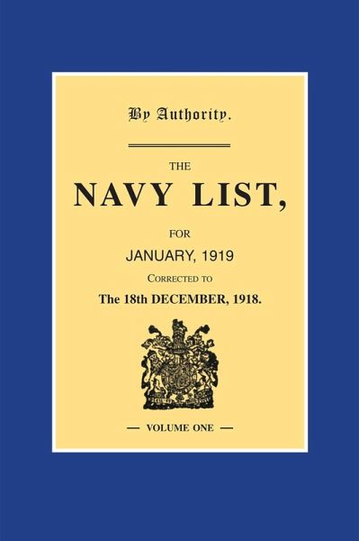 Volume 1 of 5This is a significant work of reference in that it provides the personnel state of the Royal Navy as at the end of the Great War; the list is corrected to 18th December 1918. And not just the personnel are featured, for here are listed HM ships of all types including merchant vessels commissioned as HM Ships. With most of the ships listed type, armament, displacement and propulsion details are given, e.g, LION. Battle Cruiser. 26,350 tons. 70,000 HP. 8-13.5 inch, 16-4 inch, 4-3pdr. This publication begins with the alphabetical list of the officers on the active list of the Royal Navy and the Royal marines showing their rank, seniority and of the retired and emergency officers serving, where serving and this includes retired and emergency officers. If the name is preceded by a number, this identifies the ship or shore station in which he is serving (they are all numbered). This is followed by a list showing officers according to seniority. Other lists are of Royal Marines; ships/shore stations with their identifying number and showing officers serving with them; RNR, RNVR, Dominion naval officers; retired RN, RM and RNR officers; invalided officers and much more. There is a section for Honours and Awards including VC (shown after the Orders of Knighthood, the DSO and Royal Red Cross), DSC, DSM and foreign awards. At the end there is a section on Dress Regulations for officers of the Fleet and even a list of lantern slides available in local libraries. The description given above by no means exhausts the information available.