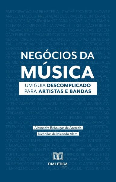Se você trabalha com música, almeja empreender na área ou é só um apaixonado e entusiasta pelo tema, esse livro é para você. A partir de anos de experiência com direito e negócios da música, os autores apresentam um guia descomplicado desse mercado em seus mais diferentes segmentos. Aqui você encontrará mais de 35 formas de monetização e produção de renda na indústria, passando pelos shows, direitos autorais, marcas, venda de catálogos, novos negócios, entre outras questões.