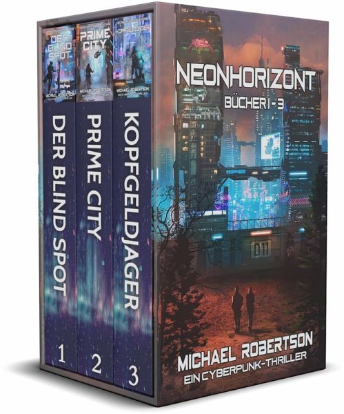 Neonhorizont Bücher 1 - 3, ist ein rasanter Cyberpunk-Thriller. Wenn du auf schillernde, neonbeleuchtete dystopische Landschaften stehst, in denen Unterhaltung, Credits und die neuesten Straßendrogen mehr wert sind als das menschliche Leben, dann wirst du diesen harten und schmutzigen Einblick in die Hyper-Städte der Zukunft lieben.