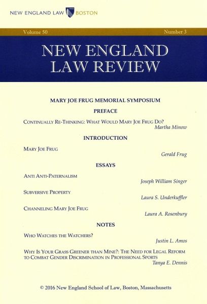 Quality digital formatting includes linked notes, active table of contents, active URLs in notes, and proper Bluebook citations. The New England Law Review offers its issues in convenient digital formats for e-reader devices, apps, pads, and smartphones. It is published by students at New England Law School Boston and for 50 years has featured contributions by leading academics and attorneys, as well as student research in the form of Notes and Comments.