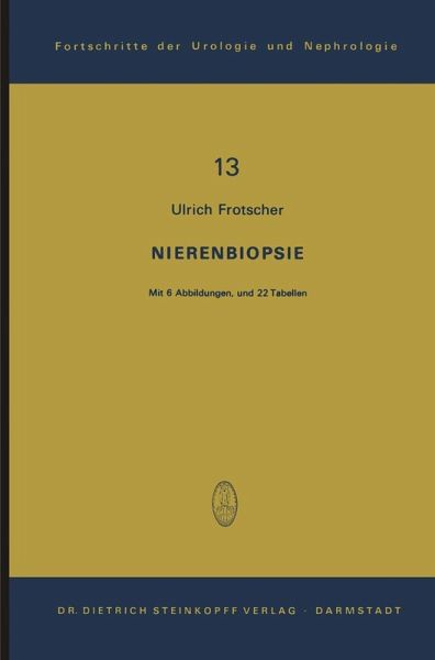 1. Historie der Nierenbiopsie.- 2. Indikationen zur Nierenbiopsie.- 2.1. Glomerulonephritis.- 2.2. Oligosymptomatische Nierenerkrankungen.- 2.3. Nephrotisches Syndrom.- 2.4. Akute renale Insuffizienz.- 2.5. Systemerkrankungen.- 2.6. Renale Symptome während der Gravidität.- 2.7. Hypertonie.- 2.8. Amyloidose.- 2.9. Nephrokalzinose.- 2.10. Seltenere Nierenerkrankungen.- 2.11. Pyelonephritis und interstitielle Nephritis.- 2.12. Zustand nach Nierentransplantation.- 3. Kontraindikationen.- 3.1. Endstadium der Urämie und Anurie.- 3.2. Hypertonie und fortgeschrittene Arteriosklerose.- 3.3. Schrumpfnieren.- 3.4. Hydronephrose, Pyonophrose und perinephritischer Abzess.- 3.5. Anomalien der Nieren und der großen Gefäße.- 3.6. Pyelonephritis und Tuberkulose.- 3.7. Mangelnde Kooperation des Patienten.- 3.8. Nierencysten und Tumoren.- 3.9. Venöse Stauung der Nieren.- 3.10. Inoperabilität des Patienten.- 3.11. Mangelnde Lokalisierbarkeit der Nieren.- 3.12. Ausgeprägte Anämie und Hypovolämie.- 4. Durchführung der Nierenbiopsie.- 4.1. Notwendige Voruntersuchungen.- 4.2. Vorbereitung des Patienten.- 4.3. Lagerung des Patienten.- 4.4. Lokalisation der Nieren nach dem Röntgenbild.- 4.5. Topographie des unteren Nierenpols.- 4.6. Lokalisation der Niere mit der Suchnadel.- 4.7. Die Punktion.- 4.8. Verschiedene. Punktionstechniken.- 4.9. Nachsorge nach der Punktion.- 5. Wertigkeit der Nierenbiopsie.- 5.1. Histologische Beurteilung.- 5.2. Erfolgsaussichten der perkutanen Nierenbiopsie.- 5.3. Faktoren, die den Biopsieerfolg beeinflussen.- 5.4. Effektivität der perkutanen Nierenbiopsie.- 6. Mögliche Komplikationen nach perkutaner Nierenbiopsie.- 6.1. Morphologische und funktionelle Folgen nach komplikationsloser Nierenbiopsie.- 6.2. Häufigkeit, Bedeutung und Behandlung vonKomplikationen.- a. Mikrohämaturie.- 6.3. Abhängigkeit der Komplikationen von prädisponierenden Faktoren.- 6.4. Langzeitbeobachtungen nach perkutaner Nierenbiopsie.- 7. Zusammenfassung.- 8. Literaturverzeichnis.