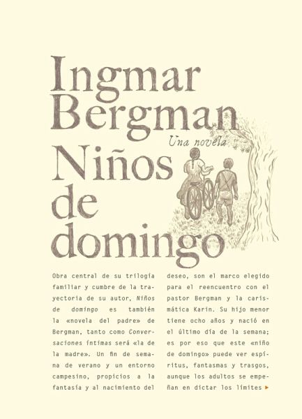 Obra central de su trilogía familiar y cumbre de la trayectoria de su autor, Niños de domingo es también la «novela del padre» de Bergman, tanto como Conversaciones íntimas será «la de la madre». Un fin de semana de verano y un entorno campesino, propicios a la fantasía y al nacimiento del deseo, son el marco elegido para el reencuentro con el pastor Bergman y la carismática Karin. Su hijo menor tiene ocho años y nació en el último día de la semana; es por eso que este «niño de domingo» puede ver espíritus, fantasmas y trasgos, aunque los adultos se empeñan en dictar los límites de la realidad: «No hay fantasmas, no seas bobo, ni demonios ni muertos que abran sus bocas ensangrentadas al sol». El miedo a la vejez (que siempre es escatológica) y a la muerte, el primer despertar sexual y una temprana crisis de fe asaltan al pequeño Pu, que no es otro que un jovencísimo Ingmar, aunque «cada niño en la obra de Bergman -nos dice Margarethe von Trotta- es él mismo». El estilo de este Bergman ya anciano es paradójicamente juvenil, se diría desaliñado, poco dado a perfilar lo ya escrito, y por eso mismo es ágil, es incisivo, y vibra, cuando no aletea. Una engañosa sencillez y la sensualidad propia de la mirada infantil gobiernan el planteamiento, y un puente invisible acaba uniendo esta obra maestra con aquella otra sembrada de Fresas salvajes.