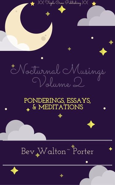 In the second volume of Nocturnal Musings, author Bev Walton-Porter offers up another helping of ponderings and essays examining the mundane to the spiritual aspects of everyday life. Whether it's finding humor in a freak hair vs. seat belt accident or contemplating one's value and worth in this fast and raw world of ours, Walton-Porter reminds us to find the humor where we can, contemplate and/or meditate when possible, and ride the waves of life's challenges one overwhelming arc at a time.