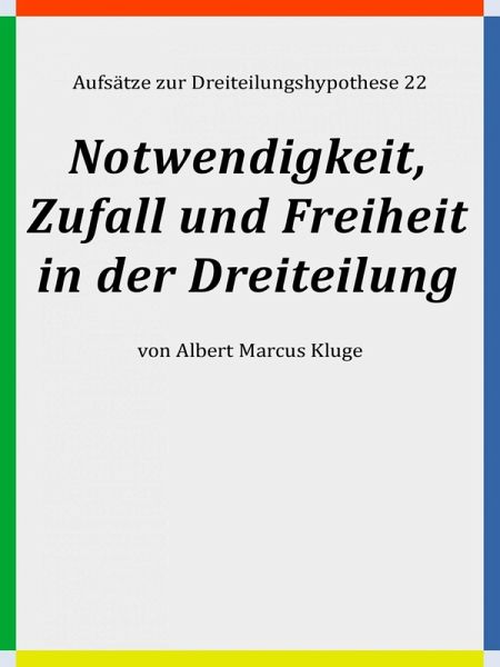 Mit dafür geeigneten Definitionen lassen sich die Begriffe »Freiheit«, »Zufall« und »Notwendigkeit« als eine Dreiteilung gemäß der Hypothese verstehen. Über ein solches Anwendungsbeispiel für eine Dreiteilung hinaus kann dieses Ergebnis auch auf die Dreiteilung selbst wieder angewendet werden, auf die verschiedenen Momente in ihrem erstmaligen beziehungsweise wiederholten Entstehen vom zu teilenden Ganzen bis zu den Teilen daraus. Und nicht zuletzt können die dabei gewonnenen Erkenntnisse indirekt auch hilfreich zur praktischen Ermittlung von hypothesengemäßen Dreiteilungen überhaupt verstanden werden, darin, was allein mit einer formal korrekt bestimmten Dreiteilung aufgezeigt wird und was dafür grundsätzlich irrelevant ist. Aufgezeigt wird nämlich ein allein vorgabenabhängiger Zusammenhang nach den formalen Regeln der Hypothese, völlig ungeachtet einer wie auch immer Bedingtheit oder Unbedingtheit des Überprüften, des Überprüfenden oder der Überprüfung.