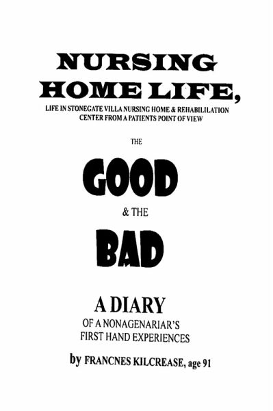 For many years, Sister Frances revealed her love and compassion for nursing home residents by recruiting church members and friends to be a part of the "Scrap Iron Gang," as it was lovingly named by her Pastor, a group that she scrapped together to sing Gospel songs with and for residents. After lively singing, she blessed everyone with an inspiring devotional from God's-word. A 90 years old widow of a Baptist deacon, she is not alone in her struggles since she is so blessed with a multitude of family, friends and church family. A devout student of God's-Word, she approaches every difficulty from the positive perspective of a born-again-child-of-God. You will be blessed, encouraged and motivated to spread God's love as you understand the positive impact that one Holy Spirit motivated child-of-God who CHOSE every morning to purposely strive to stimulate and encourage other residents by showing that she cared through listening to them, praying with them, committing to continue praying for them, giving them a bright smile, and giving a "God bless you" to residents from 20 to 100? That could be in the near or distant future for you or your loved one. As you absorb her daily diary, you will learn how to make your stay both productive for yourself and a blessing to others.