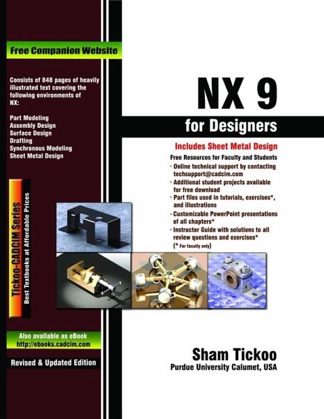 The NX 9.0 for Designers textbook has been written with the intention of helping the readers effectively use the solid modeling tools in NX. The mechanical engineering industry examples and tutorials used in this book ensure that the users can relate the knowledge of this book with the actual mechanical industry designs. The main features of this textbook are as follows: • Tutorial Approach The author has adopted the tutorial point-of-view and the learn-by-doing theme throughout the textbook. This approach guides the users through the process of creating the models in the tutorials. • Real-World Projects as Tutorials The author has used about 50 real-world mechanical engineering projects as tutorials in this book. This enables the readers to relate the tutorials to the models in the mechanical engineering industry. In addition, there are about 32 exercises that are also based on the real-world mechanical engineering projects. • Tips and Notes The additional information related to various topics is provided to the users in the form of tips and notes. • Learning Objectives The first page of every chapter summarizes the topics that are covered in that chapter. • Self-Evaluation Test, Review Questions, and Exercises Every chapter ends with a Self-Evaluation Test so that the users can assess their knowledge of the chapter. The answers to the Self-Evaluation test are given at the end of the chapter. Also, the Review Questions and Exercises are given at the end of each chapter and they can be used by the Instructors as test questions and exercises. • Heavily Illustrated Text The text in this book is heavily illustrated with about 1100 line diagrams and screen capture images.