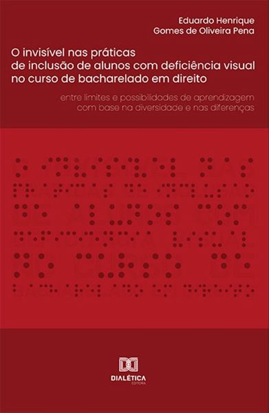 O livro é um estudo da dissertação de mestrado, o qual buscou responder o problema sobre as possibilidades e os limites de inclusão de alunos com deficiência visual no Curso de Bacharelado em Direito na UNICALDAS - Faculdade de Caldas Novas para a materialização do ensino e da aprendizagem com respeito à diversidade e às diferenças. Assim sendo, a inclusão no lócus do investigado é visível em termos de adentrar o espaço institucional, ter matrícula, ter o reconhecimento do professor quanto à aprendizagem independentemente da condição ou de ser acometido por alguma deficiência. Contudo, apontam-se as impossibilidades quanto ao atendimento à pessoa com deficiência visual, desde as particularidades do processo educativo em uma sociedade pautada pela inclusão, mas que ainda não respeita as diferenças.