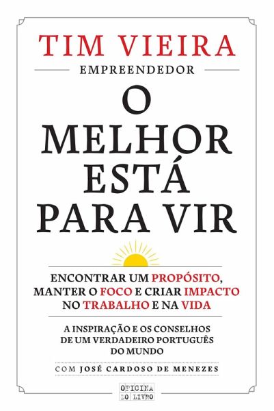 O Melhor Está para Vir é a visão de um empreendedor, networker e homem de família sobre uma arte que tem vindo a aperfeiçoar ao longo dos anos: abraçar a viagem da vida. Das ruas de Joanesburgo até à vinda para Portugal, Tim Vieira transforma uma experiência pessoal e profissional tão diversa num conjunto de lições, recheadas de exemplos, conselhos e histórias elucidativas, dirigidas a todos os homens e mulheres que querem fazer a diferença na sua passagem pelo mundo. Um convite para uma autêntica jornada de descoberta e realização através de um caminho de sabedoria e resiliência - com o objetivo primordial de que os leitores lancem mãos à obra e, por fim, deem forma aos seus sonhos.