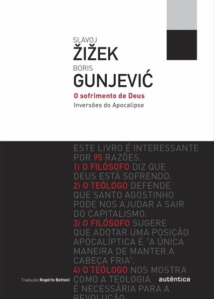 O sofrimento de Deus: inversões do Apocalipse é uma análise e uma reconstrução brilhante dos três maiores sistemas de crença da atualidade. Um debate entre Slavoj Zizek, um dos intelectuais mais articulados do mundo, e o filósofo croata Boris Gunjevi?, teólogo radical. Em seis capítulos que descrevem o cristianismo, o islã e o judaísmo usando as ferramentas da análise hegeliana e lacaniana, o livro mostra como cada sistema religioso entende a humanidade e a divindade, e como as diferenças entre eles podem ser muito mais estranhas do que parecem à primeira vista. Os debatedores nos oferecem uma investigação crítica, não um texto religioso. Com uma dedicação contagiosa e uma genialidade para realizar conexões improváveis, Zizek põe em xeque o suposto ateísmo ocidental e contempla a ideia desconcertante de um Todo-Poderoso que tanto sofre quanto ora. Partindo das artimanhas de Zizek e apresentando outras, Gunjevi? faz a convocação revolucionária de uma teologia que enfraqueça a astuciosa "escravização do desejo" do mundo capitalista. Com exemplos marcantes e uma lógica afiada, Zizek e Gunjevi? evocam pensadores que vão de Agostinho a Lacan, e discussões que incluem a dualidade entre ética cristã e pagã, a "luta de classes" subentendida na leitura do Alcorão e o papel do gênero no islã. Juntos, eles confirmam e analisam a fé no século XX, abalando as estruturas das tradições abraâmicas.