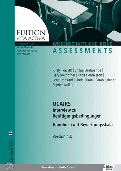 Das OCAIRS (Occupational Circumstances Assessment and Interview Rating Scale) ist ein Erhebungsinstrument zum Modell der menschlichen Betätigung (MOHO) von Gary Kielhofner und seinem Team. Es bietet eine übersichtliche Struktur für das Erheben, Analysieren und Dokumentieren von Daten über das Ausmaß und die Art der Teilhabe eines Menschen an Betätigung. In Interviews werden Informationen über Rollen, Werte, Interessen, Fertigkeiten und Ziele des Klienten sowie über seine physische und soziale Umwelt gewonnen. Dazu liegen ausführliche und zusammengefasste Befragungs- und Bewertungsbögen für die Bereiche Psychiatrie, Forensik und Körperbehinderung vor. An Fallbeispielen wird verdeutlicht, wie sich mit dem OCAIRS Interviews, Auswertungen und anschließende Therapieplanungen erarbeiten lassen. Die Arbeitsbögen können für den persönlichen Gebrauch kopiert werden.