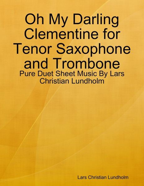 This tradional American western folk ballad with English words by either Percy Montrose or Barker Bradford in 1848 is set to the Spanish folk song Romance del Conde Olinos o Nino and Down by the River Liv'd a Maiden by H. S. Thompson (1863). It was made popular by Mexican miners during the California Gold Rush between 1848 and 1860 and has been featured in numeorus films including Repo Man, Back to the Future Part III and The Grapes Of Wrath. The English nursery rhyme Call the Doctor uses the melody as well as songs like Chinese New Year song Xin Nian Hao Ya, Hindi film C.I.D song Yeh Hai Bombay Meri Jaan and Malayalam funeral march Samayamam Rathathil Njan Duet Sheet Music for Tenor Saxophone accompanied by Trombone arranged by Lars Christian Lundholm. Oh My Darling Clementine is also known by alternative title: Romance del Conde Olinos o Nino, Call the Doctor, Xin Nian Hao Ya, Yeh Hai Bombay Meri Jaan, Samayamam Rathathil Njan, Down by the River Liv'd a Maiden. - Instrum....