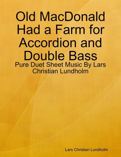 This traditional nursery rhyme and childrens song dates back to at least the late 1890s. It has been translated into many languages including Italian (Nella vecchia fattoria), German (Old MacDonald hat ne Farm), Spanish (En la granja de Pepito or En la vieja factoria), French (La Ferme a Mathurin), Danish (Jens Hansen havde en bondegaard) and Portuguese (Na quinta do tio Manel). The song has been featured numerous place in film and on TV like for instance Mickey Mouse Clubhouse, The Walking Dead, Breaking Bad, Criminal Minds, How I Met Your Mother, The Simpsons, Boardwalk Empire, The Usual Suspects, Cheers, Anchorman 2, Dirty Harry and Tiny Toon Adventures. This can be used as lead sheet as it includes chords for easy accompaniment Duet Sheet Music for Accordion accompanied by Double Bass arranged by Lars Christian Lundholm. Old MacDonald Had a Farm is also known by alternative title: Old Missouri Had a Mule, The Farmyard, The Merry Green Fields and Old Macdougal Had a Fa....