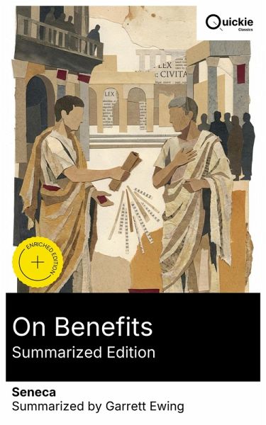 On Benefits (De Beneficiis) probes the ethics of giving, receiving, and reciprocating within Rome's patronage culture. In seven books to Aebutius Liberalis, Seneca defines a benefit as the giver's intention (animus), not the thing, and weighs timing, proportion, and decorum. He distinguishes gratitude from repayment, rebukes ostentation and calculation, and analyzes ingratitude as a civic toxin. Composed in tight, aphoristic prose enlivened by historical exempla and probing distinctions, the treatise marries Stoic moral theory to the practical social economy of the early Principate. Lucius Annaeus Seneca-philosopher, dramatist, and statesman-wrote amid Nero's court after exile and a return to immense influence. Schooled by Stoics like Attalus, he reflected on power, liberality, and obligation in works including On Mercy; De Beneficiis extends that counsel to the gift economy sustaining amicitia and imperial rule. Scholars of classical ethics, historians of Roman society, and readers interested in leadership or philanthropy will find this a lucid, bracing guide. It models generosity governed by character rather than cost, and invites reflection on how gifts forge-and poison-community. Quickie Classics summarizes timeless works with precision, preserving the author's voice and keeping the prose clear, fast, and readable-distilled, never diluted. Enriched Edition extras: Introduction · Synopsis · Historical Context · Author Biography · Brief Analysis · 4 Reflection Q&As · Editorial Footnotes.