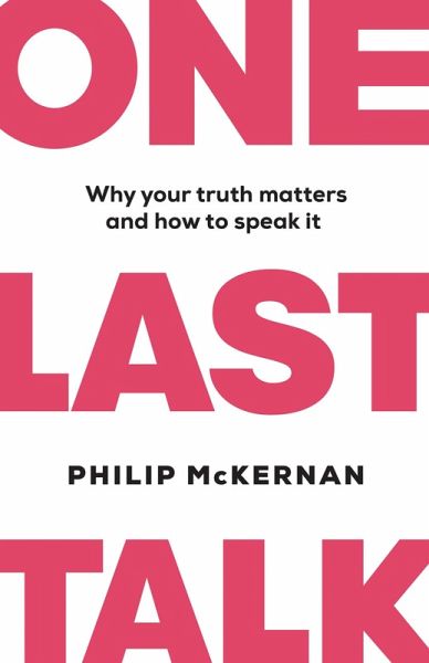 "If you were about to leave this planet, what would you say, and who would you sayit to?" This shocking and provocative question is at the core of the remarkable andinspiring book, One Last Talk: Why Your Truth Matters And How To Deliver It. Thisbook emerged from the speaking series designed to help people discover their truth,and then speak it outloud, developed by renowned coach Philip McKernan. In thisbook, McKernan goes beyond the event, and dives into what it means to discover yourtruth and speak it, why people should do this, and then deeply explains exactly howthis can be done. If you feel living more authentically could allow you to have agreater impact on others, or you can''t find the words to speak your truth as boldlyas you know you need to, this is the book for you. Make no mistake, the pathMcKernan lays out is simple, but not easy, because your greatest gift lies next toyour deepest wounds.