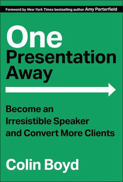 One Presentation Away: Become an Irresistible Speaker and Convert More Clients provides crystal-clear direction on how to become confident when speaking and selling from any stage and how to start getting clients, not just claps. Uniquely, this book reveals how to sell from a virtual or live stage without feeling like you're selling. Written by renowned professional speaker and presentation builder Colin Boyd, this book's core premise is that you are just one irresistible presentation away from the breakthrough you desire.