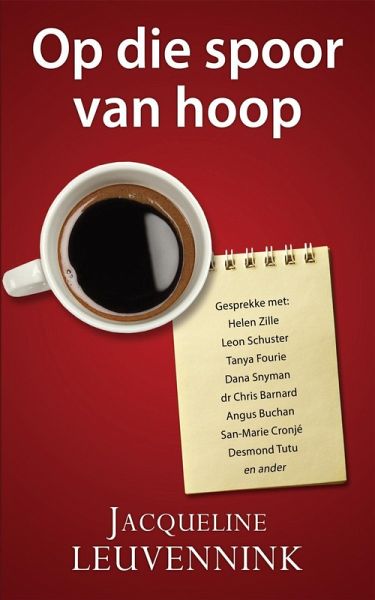 Op die spoor van hoop is 'n dokumentasie van die lewens van mense wat in hul pyn steier, maar tog bly getuig dat God, soos Hy in sy Woord belowe, jou ook nie in die dal van doodskaduwee begewe of verlaat nie. Ná jare in die joernalistiek wéét Jacqueline Leuvennink: Jy kom nie ongeskonde uit 'n opdrag om te skryf oor mense met 'n diep binnepyn nie. Dit vra van jou om jou skoene uit te trek, tussen die lyne te luister, sáám te sug oor 'n skeefgelooptheid. Sy vat dan die spoor op soek na dit wat krom en skeef was, wat uiteindelik insig en deernis gebring het. Om halsstarrig te bly hoop, al is die pad soms lank.…mehr