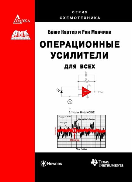 Kniga napisana gruppoy sotrudnikov kompanii Texas Instruments Incorporated - odnogo iz veduschih mirovyh izgotoviteley operatsionnyh usiliteley (OU). Izlozhennyy material vklyuchaet kak osnovy elektrotehniki i vvodnye ponyatiya ob OU, tak i rassmotrenie razlichnyh oblastey primeneniya OU, nachinaya ot elementarnyh shem invertiruyuschih i neinvertiruyuschih usiliteley i summatorov i do raznoobraznyh generatorov, aktivnyh filtrov (vklyuchaya prostye prakticheskie metody ih raschyotov), interfeysov dlya ATSP i TSAP i pr. V knige ispolzuetsya minimum matematiki, zato mnogo vnimaniya udeleno prakticheskim aspektam ispolzovaniya OU, vklyuchaya metody kompensatsii ACHH dlya obespecheniya stabilnosti OU, shumy OU, osobennosti primeneniya OU v shemah s odnopolyarnym pitaniem i v nizkovoltnyh shemah, konstruirovanie pechatnyh plat s OU i naibolee rasprostranyonnye oshibki primeneniya OU. Bolshoy interes predstavlyayut glavy, v kotoryh rassmotreny OU s obratnoy svyazyu po toku, snachala samostoyatelno, a zatem v sopostavlenii s OU s OS po napryazheniyu, a takzhe polnostyu differentsialnye OU. V prilozhenii privedena poleznaya kollektsiya shem, illyustriruyuschaya vozmozhnosti, realizuemye pri ispolzovanii OU. Kniga prednaznachena dlya shirokogo kruga spetsialistov: ot studentov, nachinayuschih inzhenerov i tehnikov v oblasti analogovoy elektroniki do opytnyh razrabotchikov.